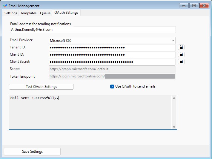 PDXpert email delivery supports OAuth in addition to SMTP. Administrators can configure provider credentials, test OAuth settings, and switch between OAuth and SMTP as needed. [c992d2a, bde3589, 8da642f]